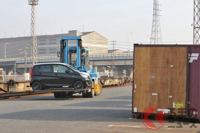新車の輸送というと、大型トレーラーの積載車や専用船などで行われるのが一般的ですが、一部の軽自動車メーカーでは鉄道貨物も活用しているといいます。どのような方法なのでしょうか。