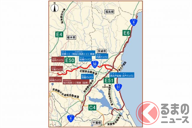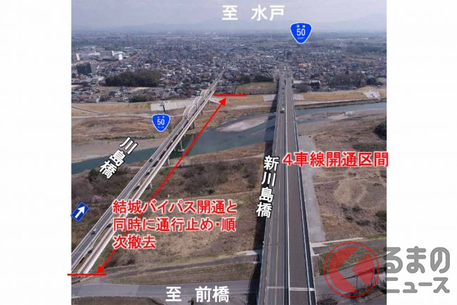 新4号から下館方面が快適に! 国道50号「結城バイパス」がついに全線4車線化 従来の川島橋は撤去へ