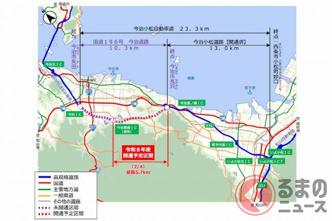 愛媛~広島つなぐ「今治小松道」2026年度延伸へ しまなみ海道接続まであと一歩!