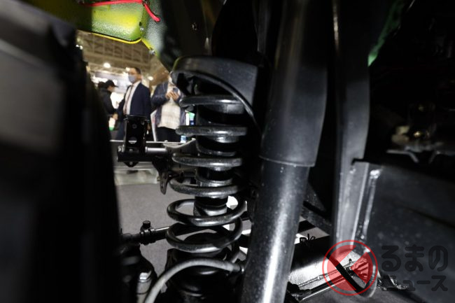 ヨンマルのDNAを受け継いだと言えばそれまでですが、縦置きエンジンを収めるスペースの横に、別体でフェンダーを設置。