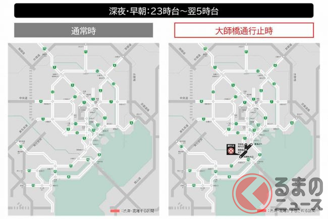 首都高速は、「通行止めの詳細情報や渋滞予測などについては、高速大師橋リニューアル特設サイトで随時お知らせします。お客さまには大変ご迷惑をおかけしますが、ご理解とご協力をよろしくお願いします」としています。