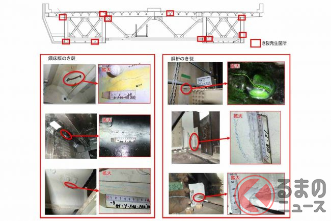 さらに1968年の開通から50年以上にわたり多くの交通量を支えてきたこともあって、老朽化が進行。首都高速によると、このような状況により橋全体に1200か所以上の疲労亀裂が発生しており、補修をしているものの、新たな亀裂の発生も確認されているといいます。