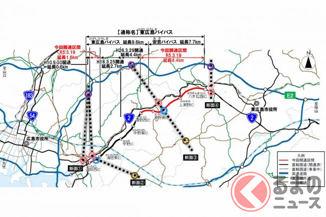 広島県の国道2号東広島・安芸バイパスが2023年3月19日に全線開通して、1か月がたちました。周辺の道路は、どのような変化があったのでしょうか。