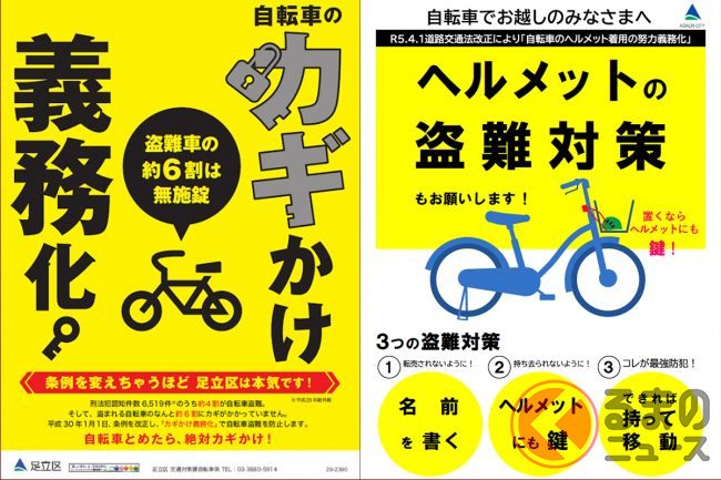 そのようななか、東京都足立区では早速「ヘルメット盗難対策」に関する周知ポスターが各所に掲示されています。