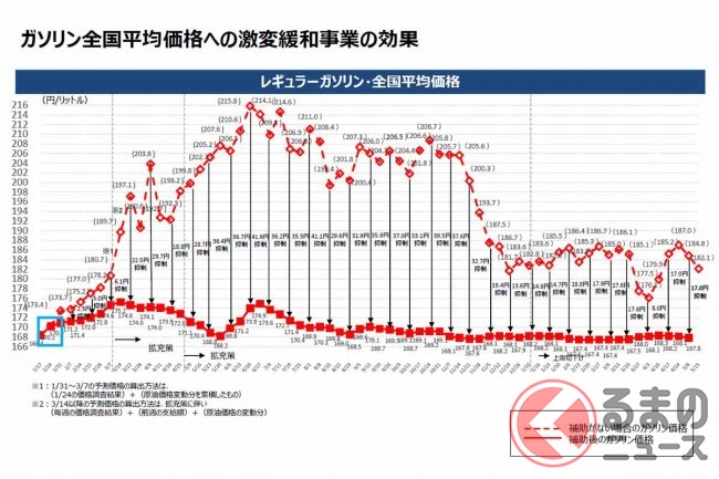 ガソリン緩やかに値下がり レギュラー平均167.8円 「補助金なし価格」も下落傾向?