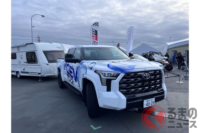 2022年に3代目にフルモデルチェンジした現行タンドラは「シングルキャブ」「ダブルキャブ」「クルーマックス」の3つのボディタイプを展開しており、イベントで登場する車体はクルーマックスと呼ばれる左右4枚のドアを備えたキャビンの広さと快適性を重視したモデルです。