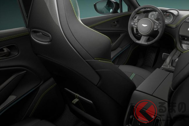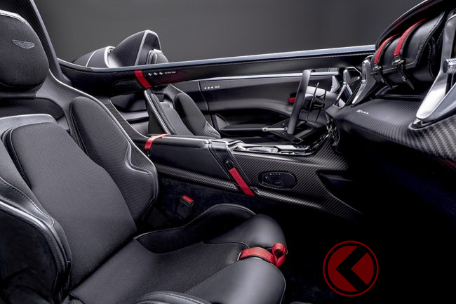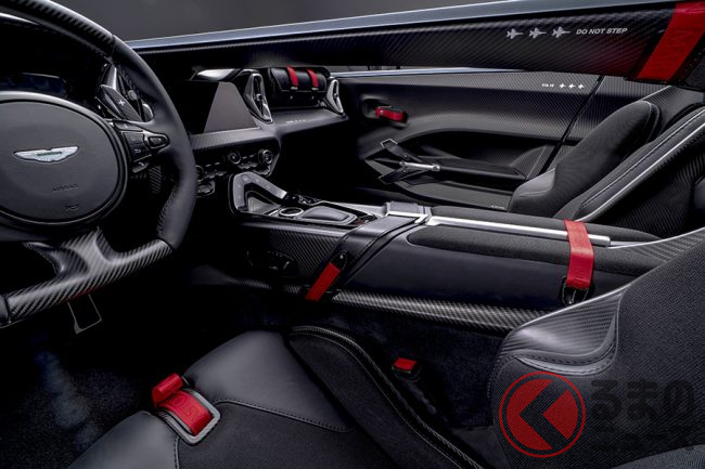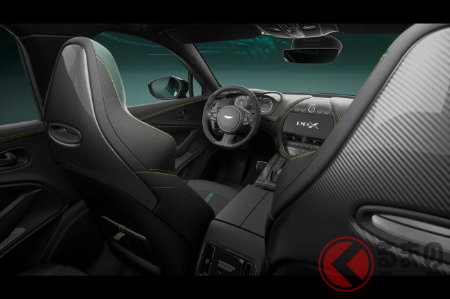 インテリアには「インスパイア・スポーツ・デュオトーン・オニキスブラック/アイフェルグリーン」の内装色と「ライム・コントラスト」のステッチを組み合わせた印象的な内装や、カーボンファイバー製のパネルやジュエリーを備えました。サイドシルには「AMR23」のロゴも配されており、レースの現場に本籍を置くアストンマーティンの血統を強く印象付けています。