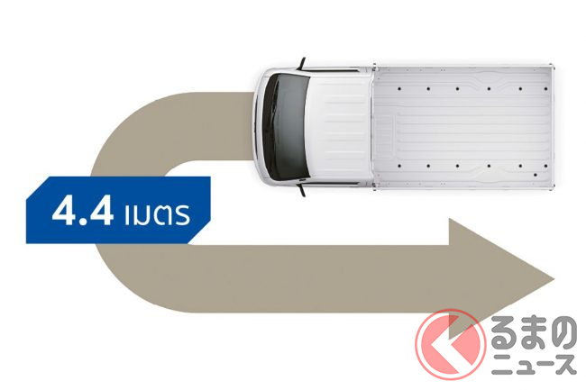 トレーラーを含めたアクティ・コンポのボディサイズは全長4975mm×全幅1475mm×全高1990mm。軽自動車枠を超えるサイズで気になるのは、車体の大きさゆえの小回り性能ですが、アクティ・コンポはハンドルの切れ角を拡大すべく電動4WSシステムを搭載しています。