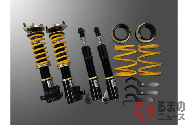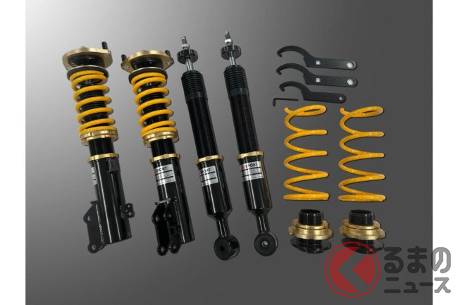 これまでD-SPORTでは、純正サスペンションと同じ形状のサスペンションキットは販売していましたが、今回発表された「S-SPEC サスペンションキット」は、前後フルタップ式(全長調整式)の車高調整式サスペンションといいます。