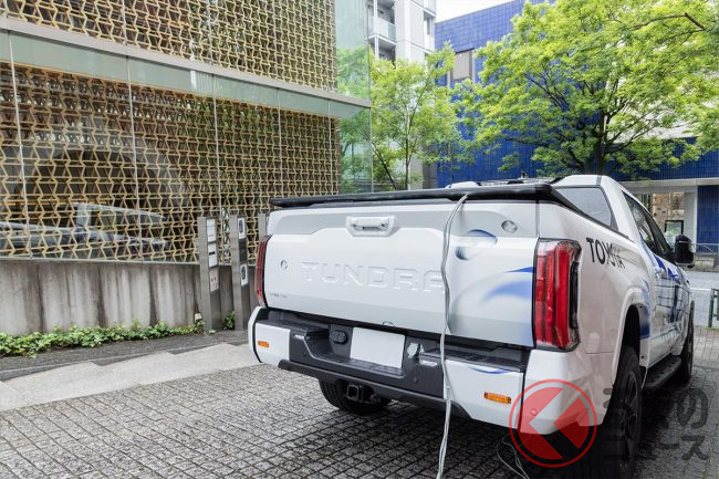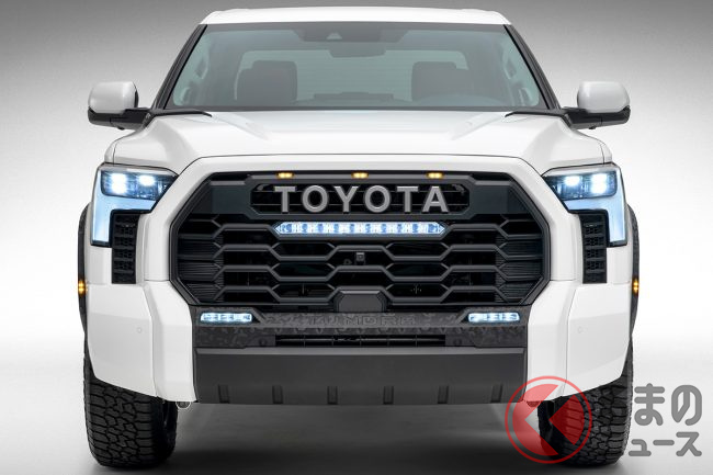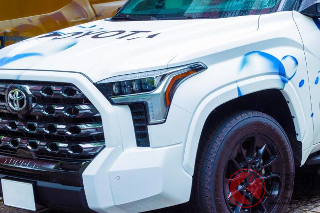 タンドラは北米トヨタが販売するフルサイズのピックアップトラックで、イベントに登場するモデルは2022年にフルモデルチェンジした3代目。左右4枚のドアを備えたキャビンの広さと快適性を重視した「クルーマックス」と呼ばれる仕様です。