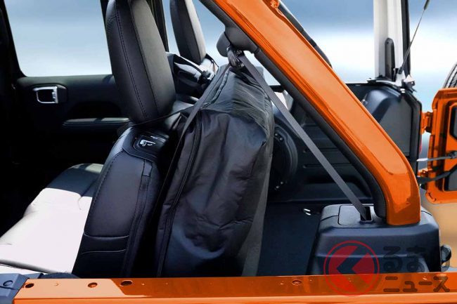 さらに開放感を味わいたいときは、リアクォーターウインドウを簡単に取り外せます。取り外した後は専用のバッグに収納し、リアシート背面に取り付けることが可能です。