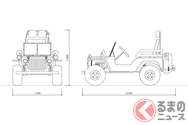 ミニカーは全長2500mm以下×全幅1300mm以下×全高2000mm以下、総排気量50cc以下または定格出力0.6kW以下と定められており、かなりコンパクトなサイズ感であることが分かります。
