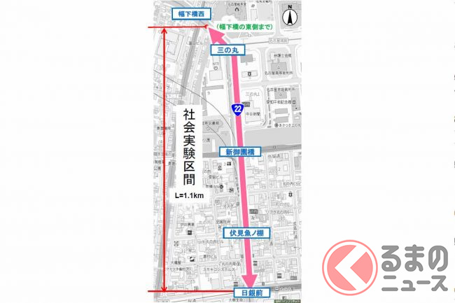 国土交通省中部地方整備局名古屋国道事務所は2023年5月17日、名古屋市内の国道22号で車道の一部車線を自転車レーンに変える社会実験を行うと発表しました。
