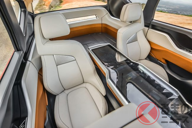 広々した車内は、インパネ上部にドアトリムに繋がる「ワイドマルチディスプレイ」や、フロントウインドシールドには、AR(拡張現実)技術を応用した「ARウインドシールド」を装備。また、室内中央にはタッチスクリーン式の大型インターフェイス「タクティカルテーブル」を配置し、先進的で新しいクルマの方向性を目指しました。
