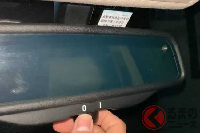 このようなレバー付きのミラーを「防眩式ルームミラー」といい、レバー操作により視野がほとんど変わらないまま反射角のみ変わるため、後続車のヘッドライトによる反射光を減少させることが可能です。
