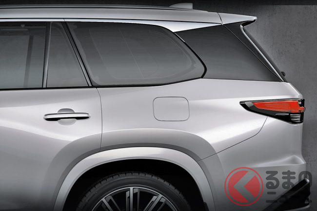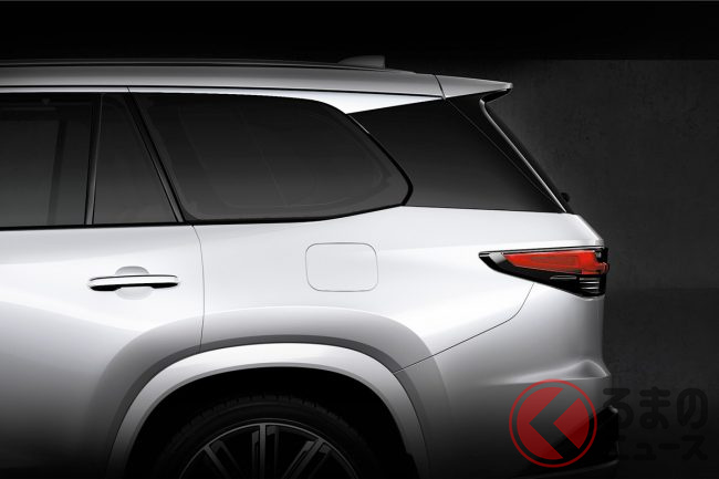 ボディサイドの形状を見て、SNSでは、トヨタが米国で展開する3列シートSUV「ハイランダー」または「グランドハイランダー」のレクサス版と予想する声もあり、その一方で、ラージサイズとされていることから海外専売モデルになるのではないかとの推察も見受けられます。