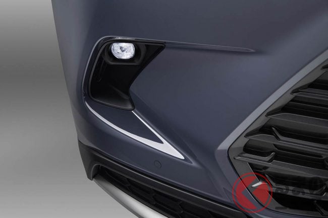 新型GXのティザー画像はフロントの一部とリアの2枚が公開されており、フロントはシャープなヘッドライトや頑丈そうなボンネットフード、盛り上がったフェンダー、ブラックのグリルが確認できます。
