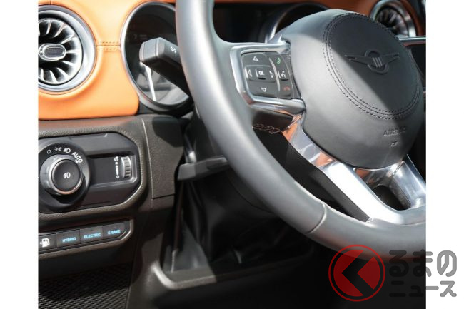そんなタンクに今回追加されたのがプラグインハイブリッドモデルです。給電口は車体運転側のフロントフェンダーにあり、一充電あたりの走行可能距離(EVモード)は30マイル(約48km)です。詳細は公表されていませんが、成り立ちからするとパワートレーンはラングラー4xe(フォーバイイー)と基本的に同じものと考えられます。