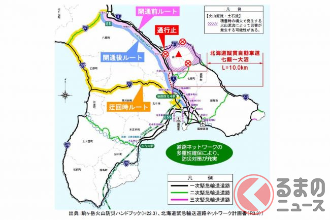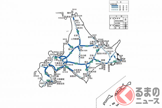 道路は国土交通省北海道開発局が主体となって2005年度に事業化、2015年度に工事着手。道路の幅は12.0m(トンネル部は9.5m)で、設計速度100km/h、暫定2車線で整備される計画です。