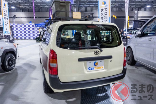 そんなカスタムカーの中で気になったのが、カーストックが展示していた2台のトヨタ「プロボックス」です。今回はその内のクリーム色のプロボックスについてご紹介します。