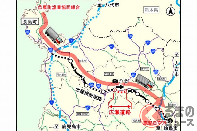 鹿児島県の鹿児島空港と北薩地域を結ぶ北薩横断道路のうち、広瀬道路の区間が2023年度に開通する見込みです。どのようなルートなのでしょうか。