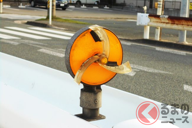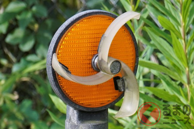 道路の「オレンジ色の反射板」なぜ設置? 「羽根付き」の意味は? 知られざる「デリネーター」の役割とは