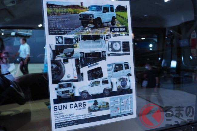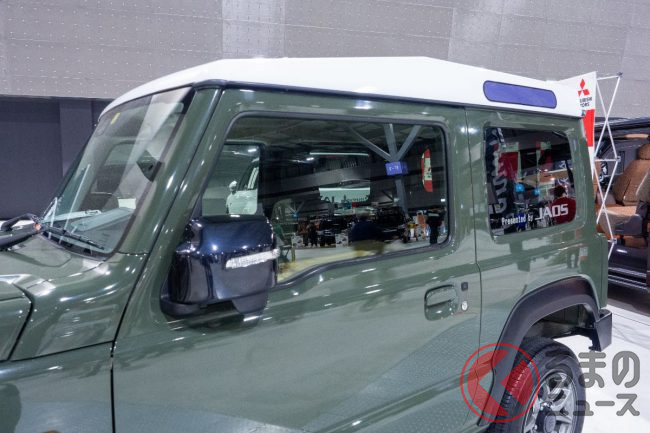 その中でも目をひいたのが、西尾張三菱自動車販売のブースで出展していた“ディフェンダー風”のスズキ「ジムニー」。三菱自動車の販売会社のスペースに置かれるにはちょっと意外すぎるこのクルマについて、話を聞いてみました。