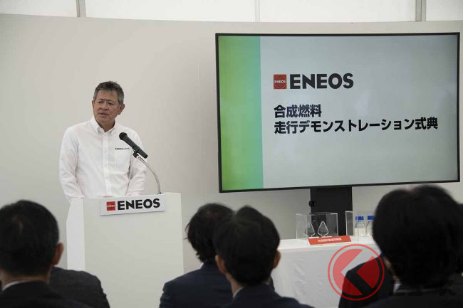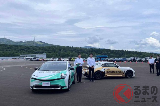 2023年5月28日、ENEOSが、国内初製造となる合成燃料(e-fuel)を実際のクルマに充填(じゅうてん)して走らせる試みを実施しました。どのような取り組みだったのでしょうか。