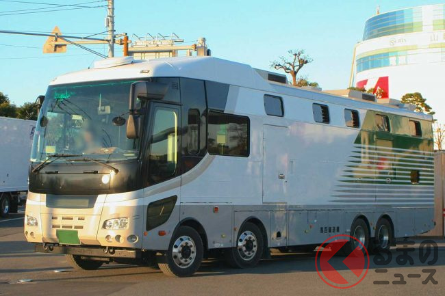 車長約12m、4軸(12タイヤ)の大型トラックのシャシーにはエアサスペンションが完備され、乗り心地は最高です。