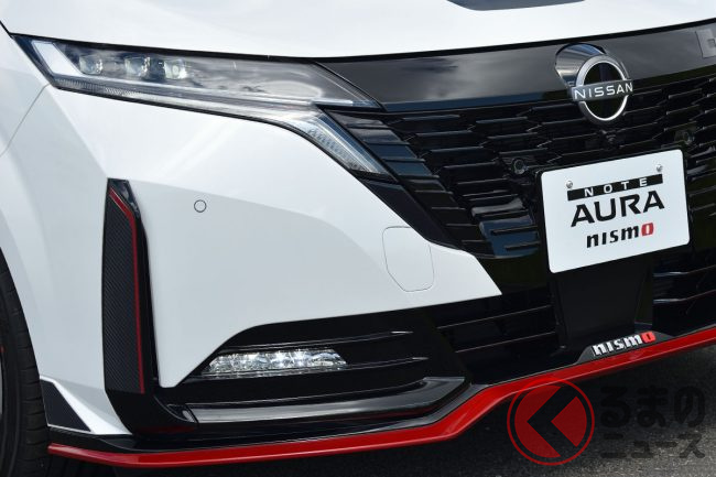 日産最強の「コンパクトハッチ」が凄い! 赤いアクセントパーツが強烈!走りと見た目の雰囲気がある 「ノートオーラNISMO」とは