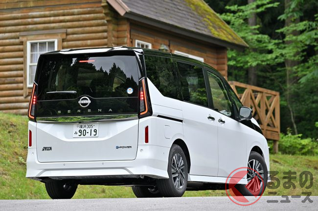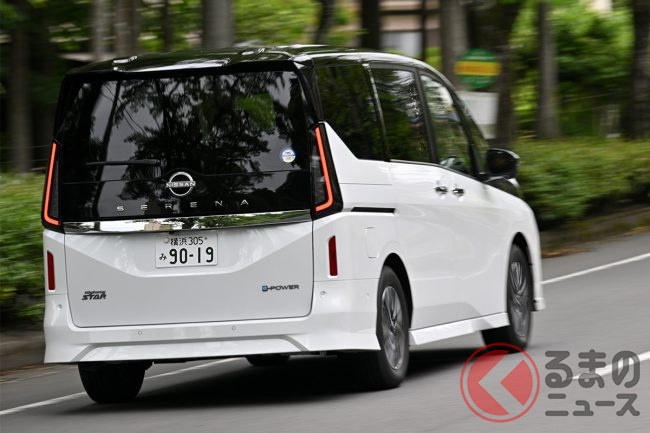 新型セレナの発表は2022年11月に行われたのだけれど、売れ筋になる「e-POWER」(編集部注記:「シリーズ方式」に分類される、エンジンを発電専用に用いたハイブリッドシステム)モデルについていえば「少し遅れます」というアナウンスが日産からされていた。