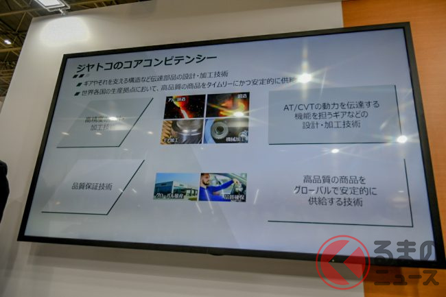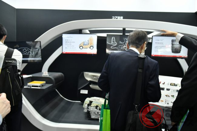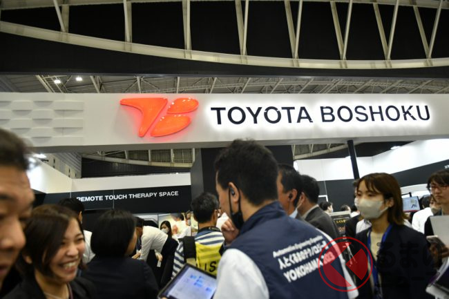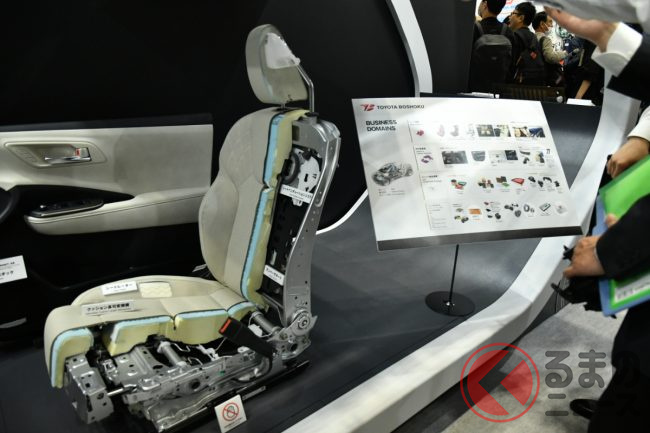 トヨタ紡織のブースではほかに、「タッチセラピー」のセラピストが優しく肩をさする触感と動きを再現したリラックスシート「Remote Touch Therapy(リモート タッチ セラピー)」(初出展)や、同社のコア技術を生かした燃料電池「FCモバイルバッテリー」、座面長の調整量が従来型より増すなどした「LEXUS新型RXフロントシート」、高耐衝撃性透明バイオポリマー(強度に優れた透明な植物由来樹脂)なども紹介していました。