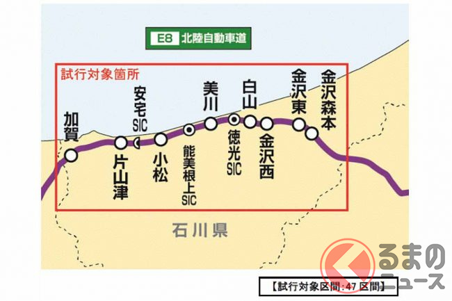 これまで石川県内の6区間を対象に6月利用分まで販売されてきましたが、7月以降は、対象区間を石川県全域の加賀IC~金沢森本IC間(47区間)に拡大し、2024年3月利用分まで販売されます。