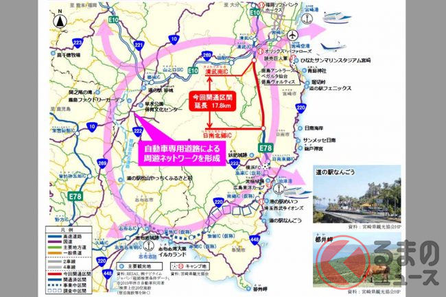 東九州道「日南直結」でどう変わった? 開通1か月で並行県道はクルマ大幅減 道の駅も変化