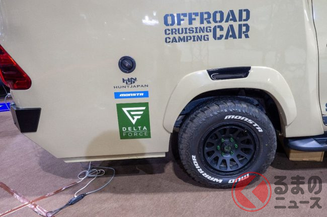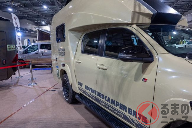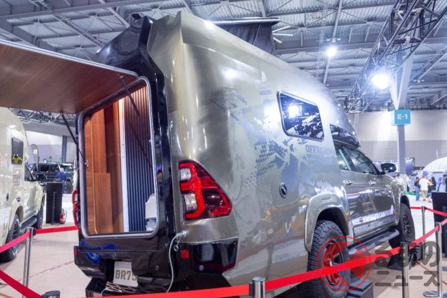 今回登場した「BR75」シリーズは、トヨタのピックアップトラック「ハイラックス」をカスタムしたキャンピングカー。会場に置かれていたのは「ハイラックスZ GRスポーツ」をベースにした「BR75-G」と、「ハイラックスZ」をベースにした「BR75-Z」の2台です。
