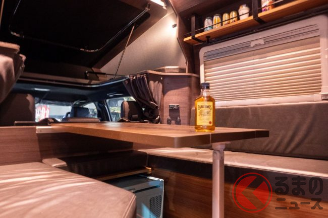 車両のコンセプトに掲げられているのは「大人の秘密基地」です。キャビンには折りたたみ式のテーブルやシャワールーム、フルフラットベッド、それに家庭用エアコンなどを用意。かなりゴージャスに造られており、そのコンセプトに違わず、外から眺めているだけでもワクワクします。