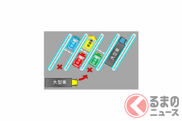 東名・新東名・中央道などを管轄するNEXCO中日本では、兼用マスは青ラインで明示していますが、本来の機能を発揮させるために、まず普通車は普通車マス、大型車は大型車マスから優先して駐車し、それぞれのマスが満車の場合に兼用マスを利用してほしいといいます。