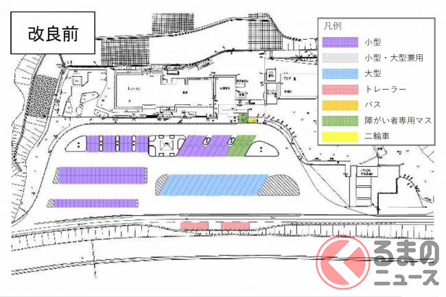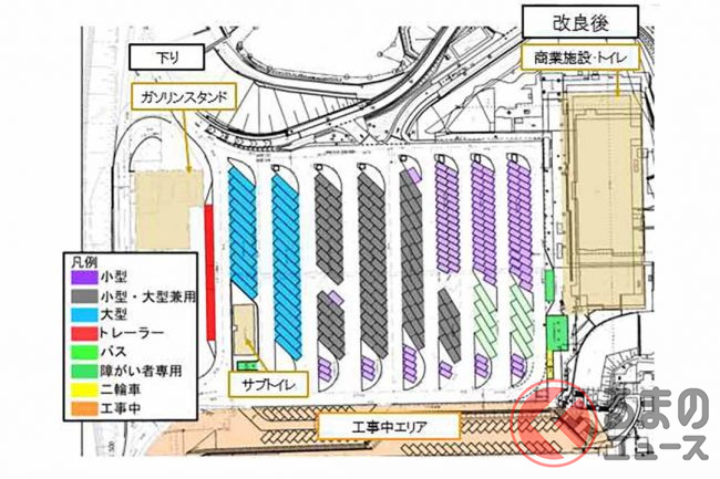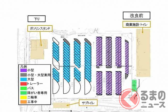 高速SAPAで増えてる「兼用マス」って? 何も考えずに駐車すると困るクルマも…「本来」の使い方とは