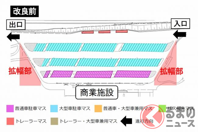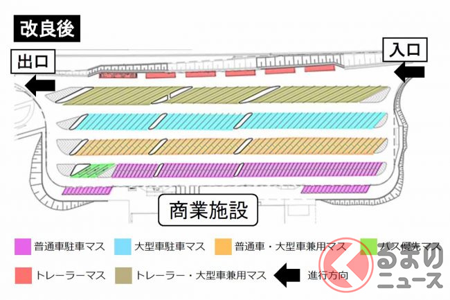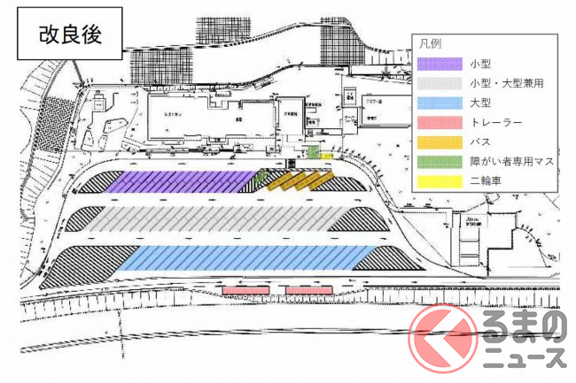 そこで2022年3月、大型車マスをそれまでの269台から352台に増やしましたが、それでも依然として混雑は発生しているといいます。