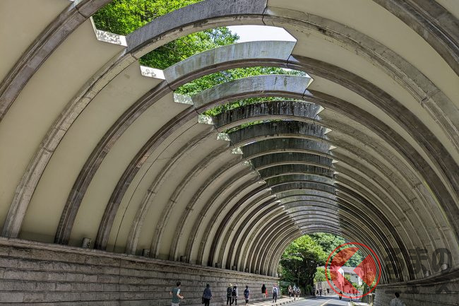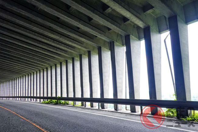 落下物による被害を防ぐには道路の上部を覆う必要があるため、結果的にトンネルと似た形状になっています。