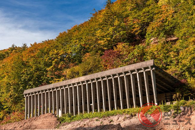 一方、覆道はトンネルのように道路や鉄道を通すために作られるものではなく、落石や土砂崩れ、雪崩から道路を守るために設置される建造物です。山岳部のトンネルは山を掘削して道路を通しますが、覆道は山の斜面を削った「切土」に通る道路を守る屋根といえばイメージしやすいのではないでしょうか。