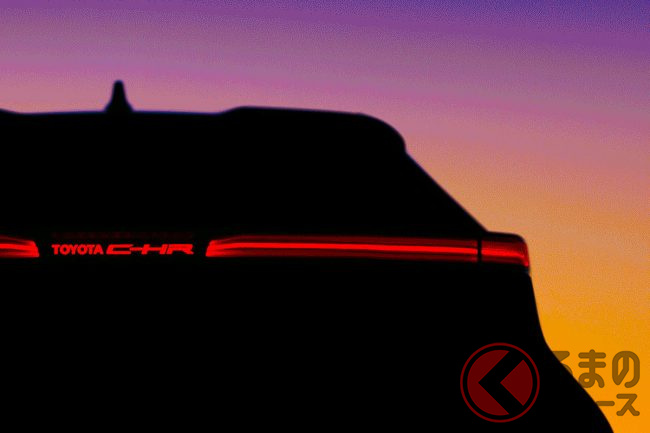 トヨタの欧州法人(以下、トヨタ)は、新型「C-HR」を2023年6月26日(現地時間)に世界初公開すると発表し、同時にボディの一部を写したティザー画像を公開しました。