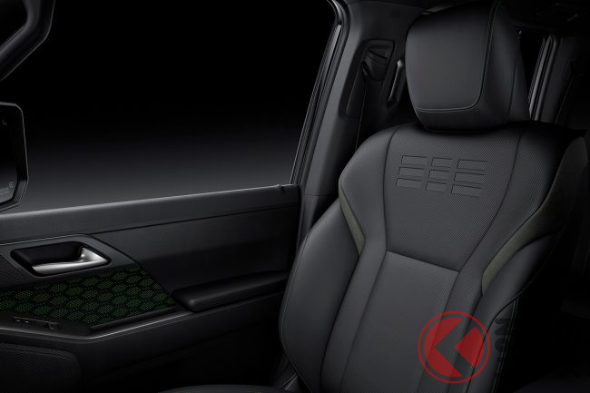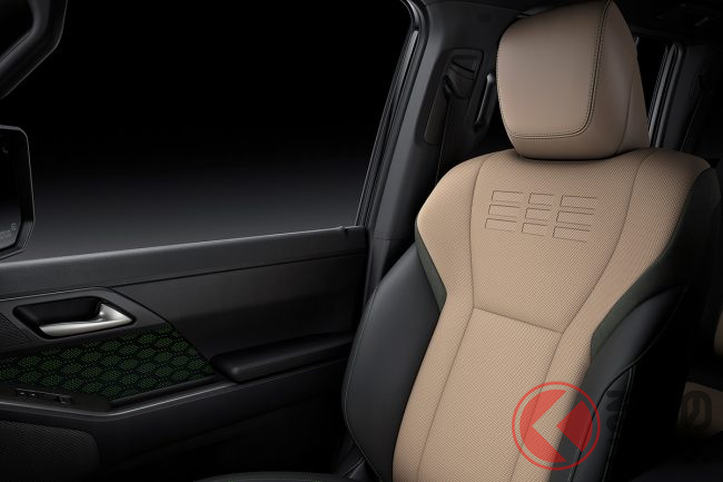 さらにオフロード性能を高めた「OVERTRAIL」仕様では2色設定するほか、ドアトリムには角度によって見え方が異なる「パーフォレーション表皮」やセンターコンソールの加飾には木炭のような艶の美しさを表した「艶炭」を採用しています。