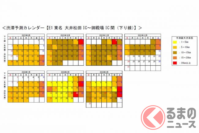 文化の日の3連休(11月3日~5日)には下りで25km、通過に1時間40分以上の渋滞が予測されています。