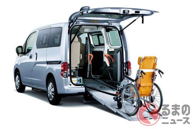 これは車いすが車内に載せられるもので、6名と車いす1名の7人乗り「車いす1名仕様」に加え、4名と車いす2名の「車いす2名仕様」が設定され、日産によると日本でいちばん小さい車いす2名仕様だといいます。