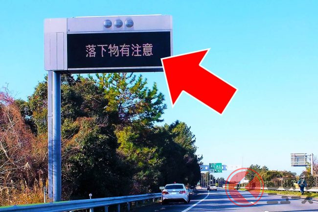 これらの通報によって落下物の情報が伝わると、道路情報板などに「落下物注意」の表示が出て、今後該当箇所を走るドライバーに注意を呼びかけることができるのです。