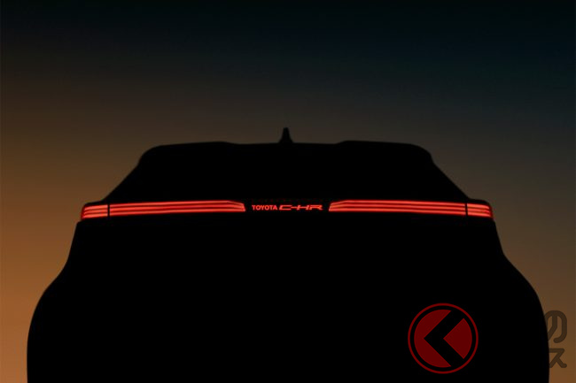 トヨタが新型「C-HR」世界初公開へ 7年ぶり全面刷新で2代目登場! 初の「赤いTOYOTAエンブレム」採用? 6月26日に発表