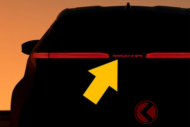 欧州トヨタは2023年6月26日(現地時間)に新型「C-HR」を世界初公開すると発表し、テールの一部を写したティザー画像を公開しました。