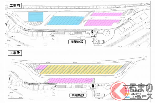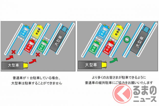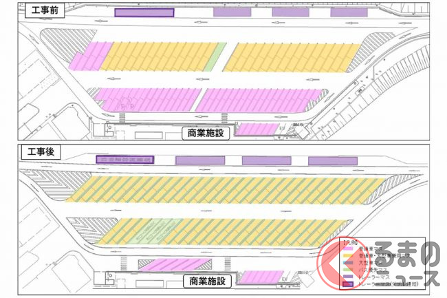 その結果、大型車の駐車可能台数は3エリア合わせて約1.7倍に増えるといいます。