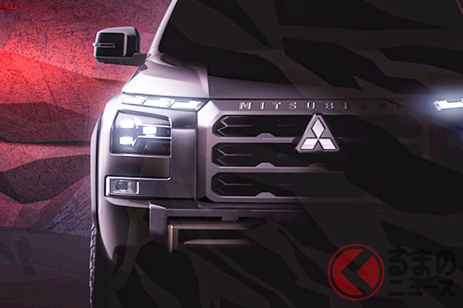 三菱が新型「トライトン」世界初公開へ! ド迫力顔&巨大ボディが明らかに! まさに“野獣”な「世界戦略車」タイでまもなく発表